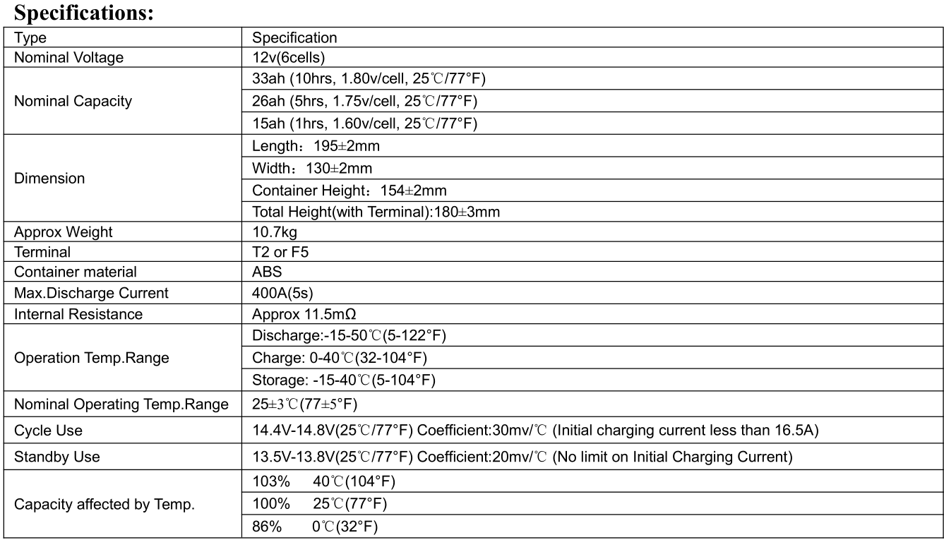 *Safe and stable quality using ABS Engineering Plastic, valve regulated technology, double vented safety design.