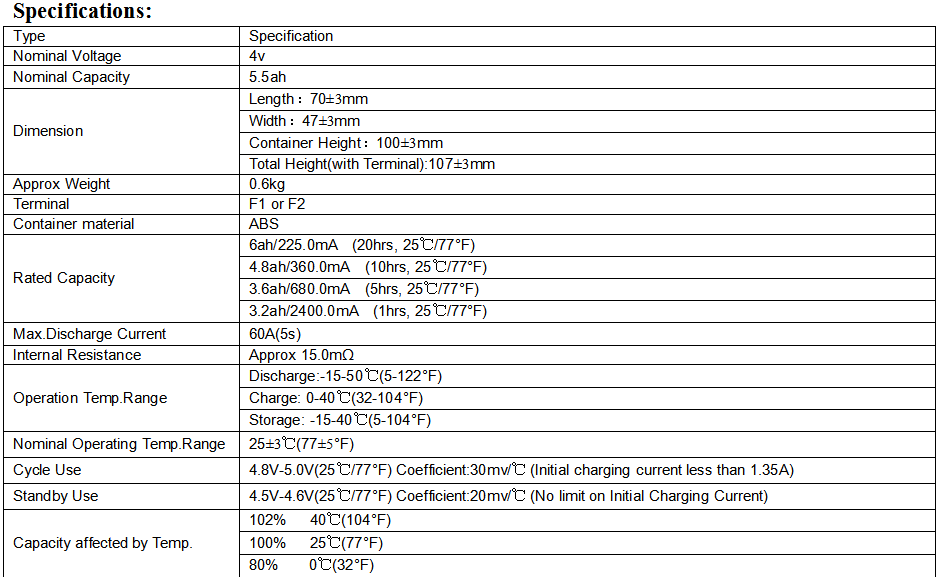 *Safe and stable quality using ABS Engineering Plastic, valve regulated technology, double vented safety design.