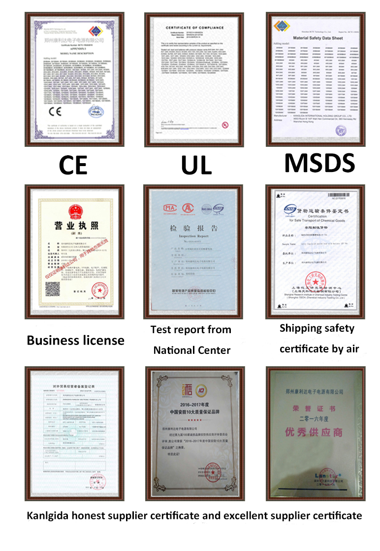5. Certificates--CE&UL&MSDS certification and National Center For Quality Supervision and Inspection of Battery Products approved